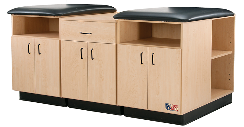 With our full line of modular taping stations, you can custom design and brand your athletic training room with exclusive options you will not find anywhere else. The modular taping stations offer flexibility for the design of your space. From individual taping seats and cabinets to 5 seat taping stations, the configuration options are endless. All taping stations are solidly constructed and fully finished, with several laminate and wood options available.